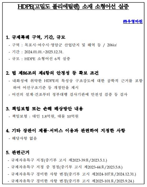 전남 친환경 HDPE 소형어선 규제자유특구 이용자 고지문